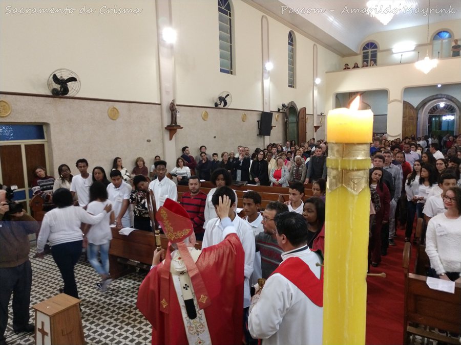 celebrada na noite de sábado, na Igreja Matriz a Santa Missa do Sacramento da Crisma, quando 44 jovens foram